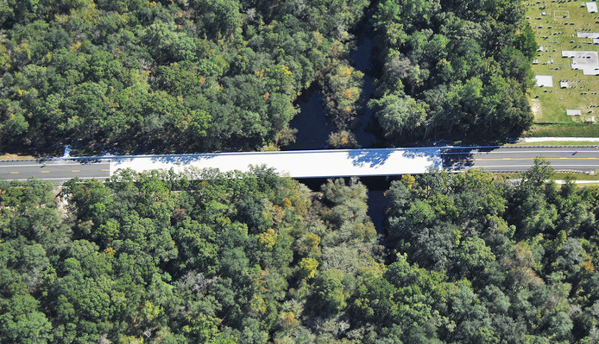 Located in the rural area south of Lake City, this project consists of the removal and replacement of the existing deficient bridge along with the associated roadway improvements. Removal of 125’ of existing embankment and roadway provided increased sheet flow through the drainage basin. Top-down construction methods were utilized due to environmental and right-of-way restrictions. The design of this 6-span structure incorporated the new Florida “I” Beam (FIB) spaced 12’ on centers. The project was completed within the original allowable contract time and received FDOT’s maximum Performance Score of 110.