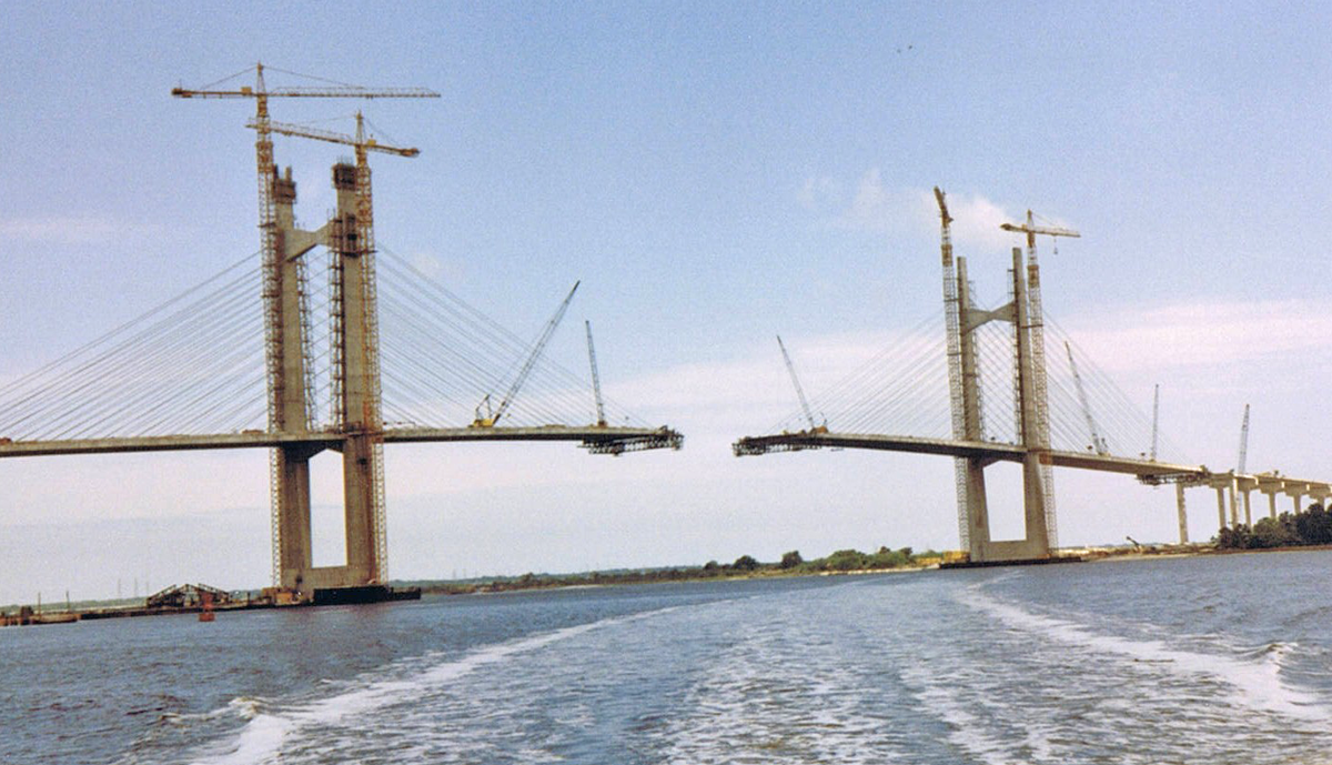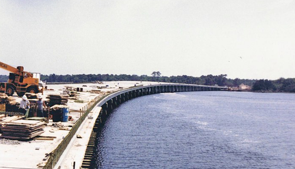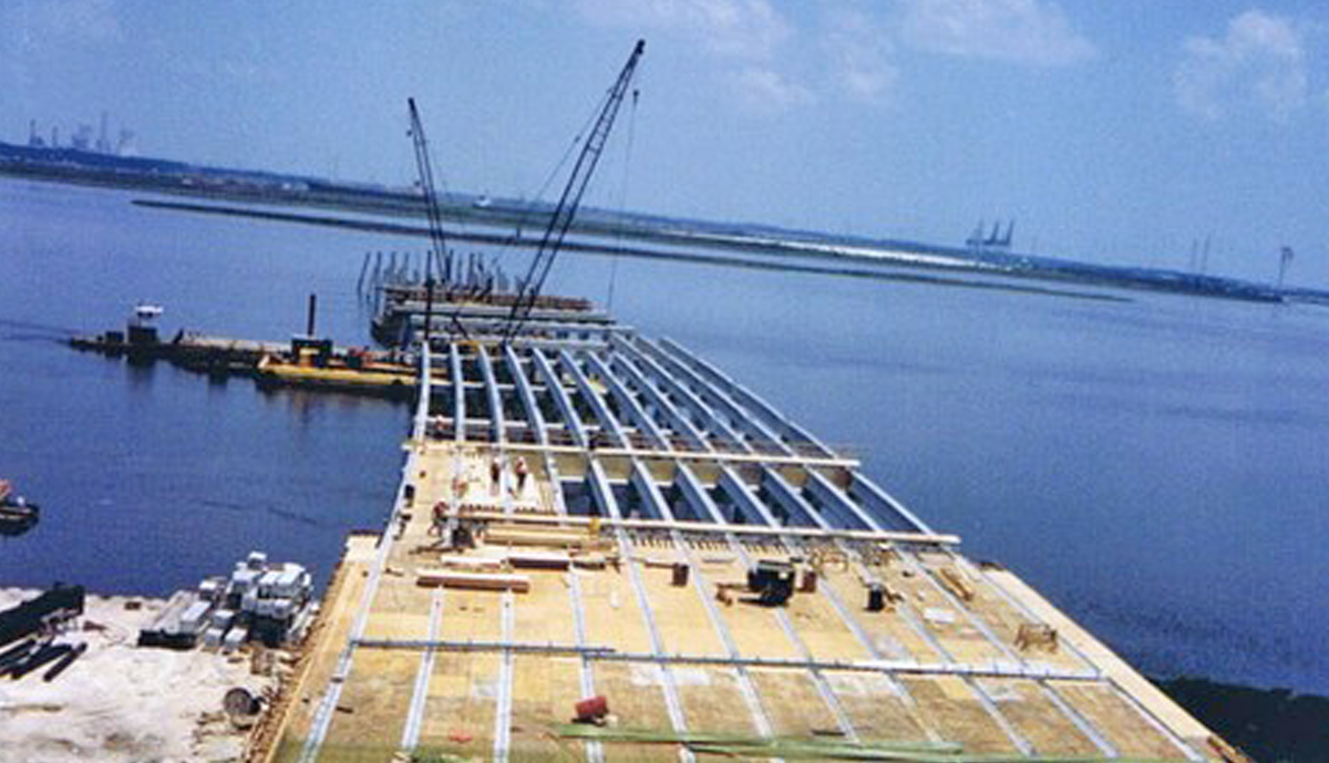 The entire St. Johns River crossing east of downtown Jacksonville consisted of four separate construction contracts. Leware’s task was the casting of 372,600 sq.ft. of bridge deck and barriers for the southern 4,050’ approach over Mill Cove.