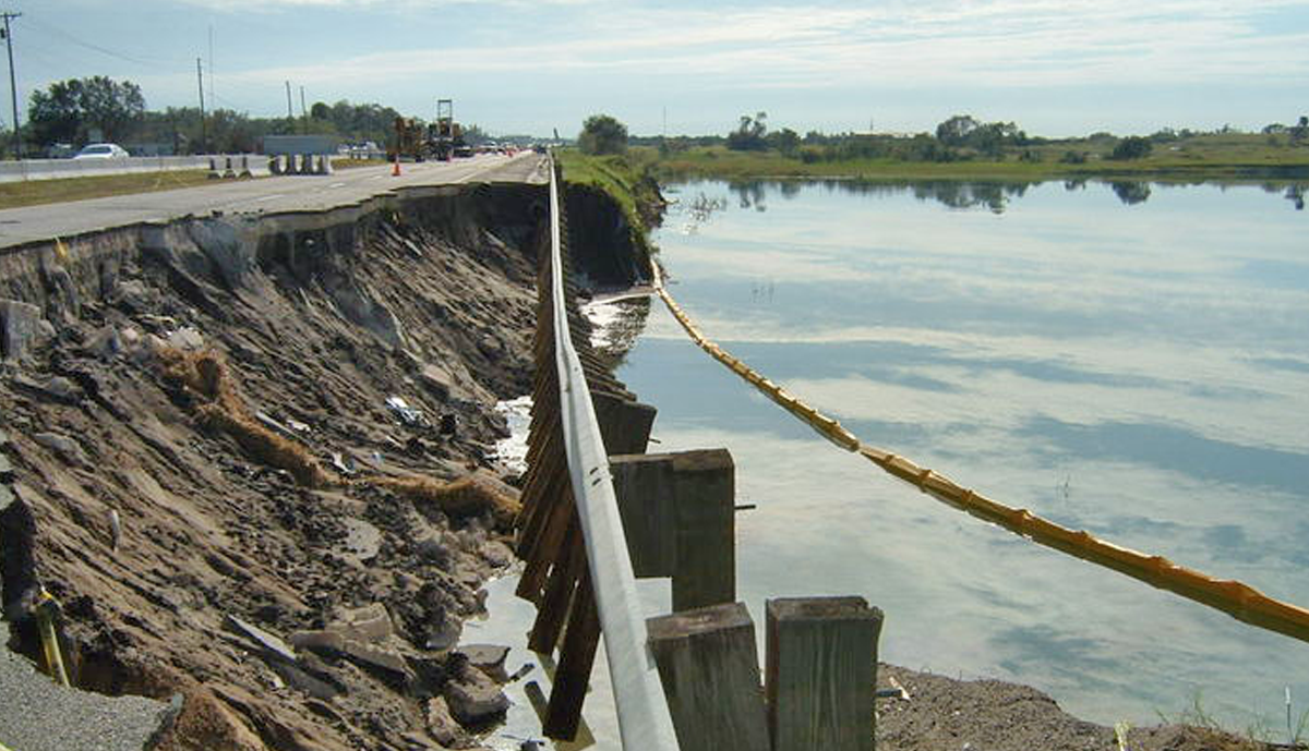 During Hurricane Charley in 2005, SR 60 sustained significant damage to the eastbound lanes due to erosion of the shoulder and undermining of the pavement along a stretch of this main roadway east of Lake Wales, Florida. The repair entailed driving two permanent rows of steel sheet piling, separated by 20’ buffer, for a distance of 1,220’ where the shoulder had been eroded. The void between the rows of sheeting was filled with flowable fill and capped with concrete, creating a new stable shoulder which enabled the reconstruction of the damaged highway.