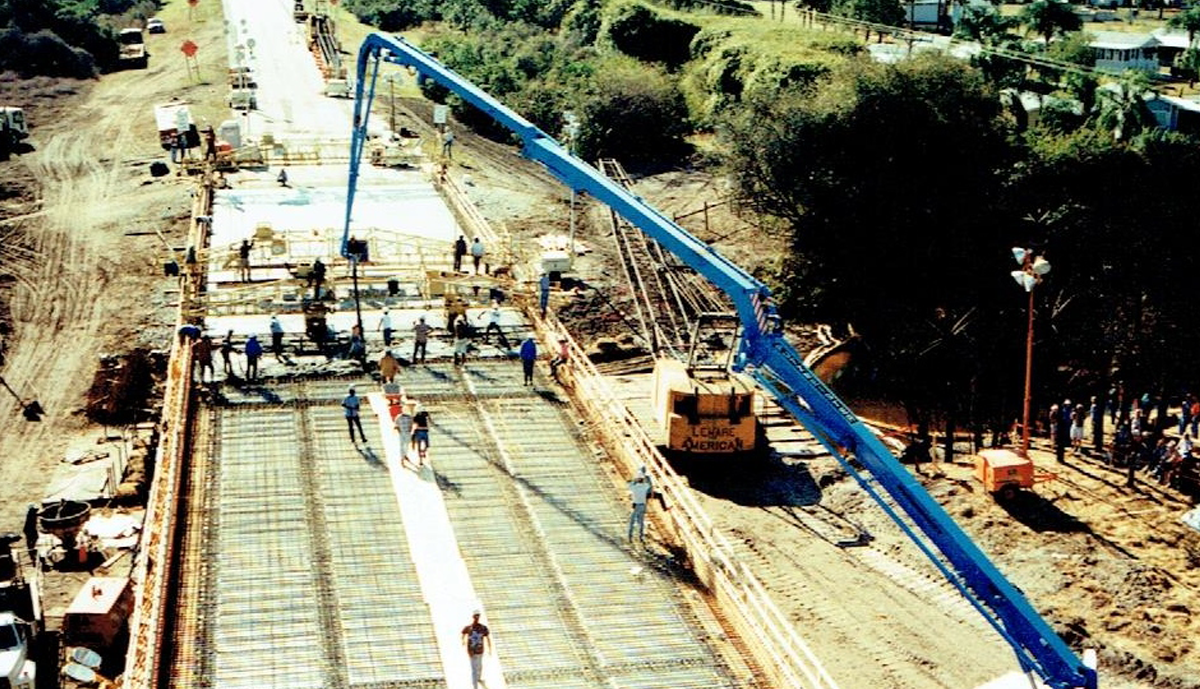 In 1996, an accident took place on I-75 Southbound in Sarasota County, closing the Interstate. A tanker truck full of diesel fuel lost control and overturned, spilling its’ load which ignited under the Salt Creek Crossing. The Southbound traffic had to be rerouted through downtown Venice, creating a backup several miles long. FDOT officials contacted Jim Leware, an agreement was reached and Leware Construction Company mobilized its resources based on a hand shake. Eighteen days later the bridge was reopened. All of the Bridge’s 5 span 330’ superstructure had to be removed and replaced including the AASHTO Type III Beams. Three intermediate pile caps along with their piling (to a depth of two feet below existing ground) also were required to be removed and replaced. The barrier wall was recast and painted, sod was laid, landscaping, and traffic striping. By all accounts it was a remarkable achievement involving tremendous effort and cooperation by all parties to enable so much to be accomplished in so little time.