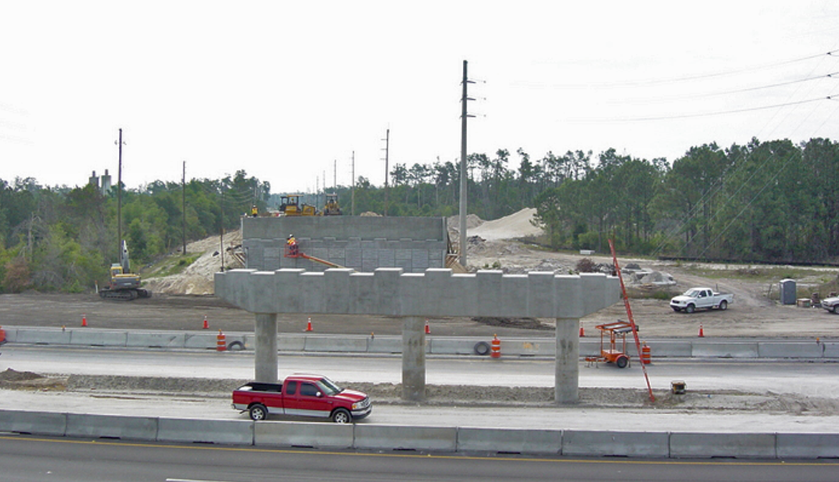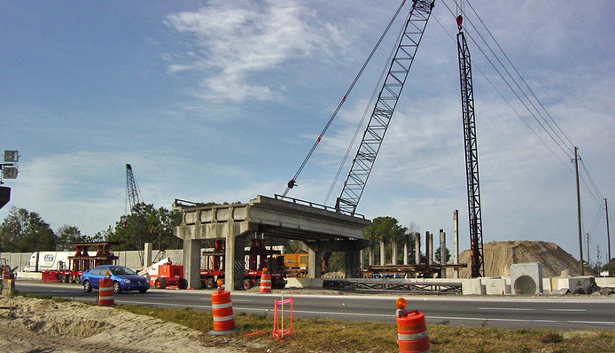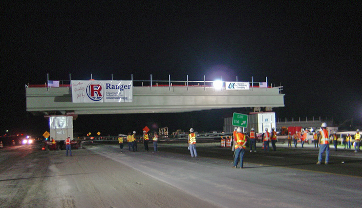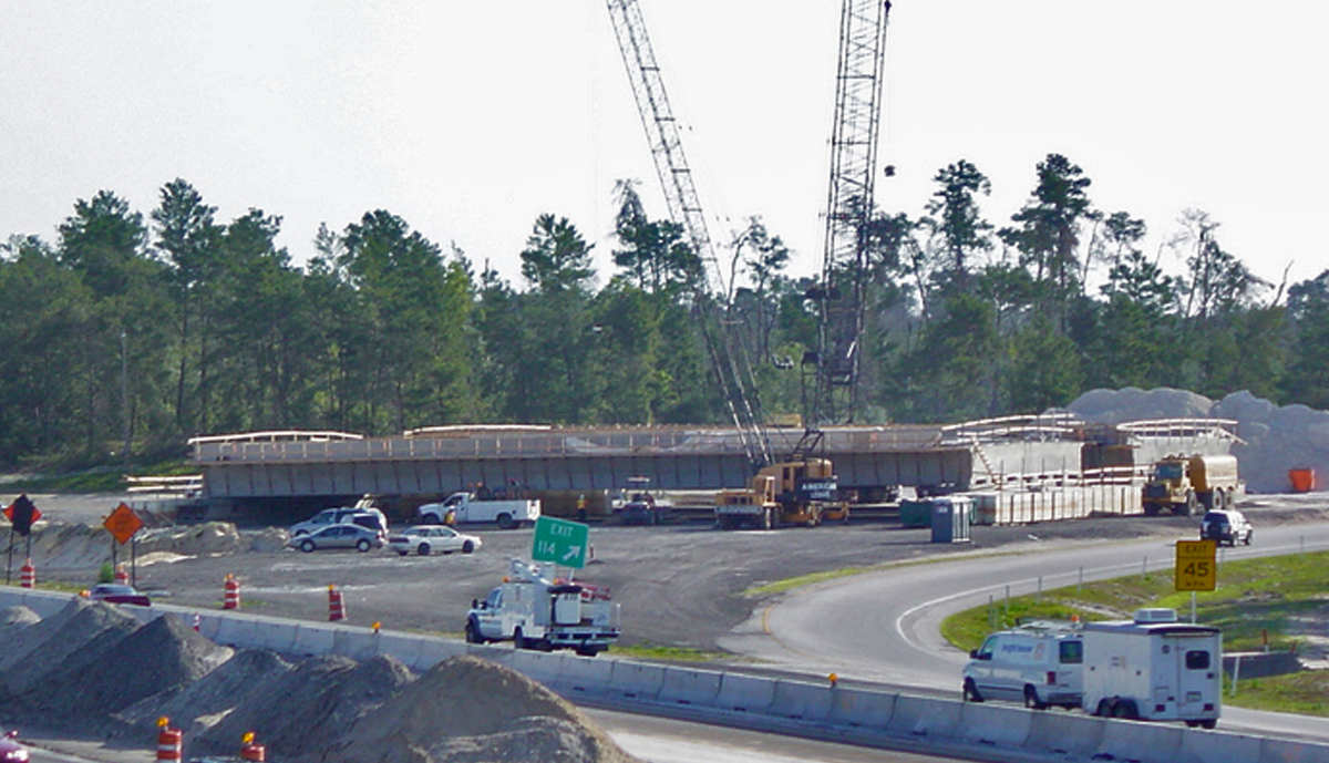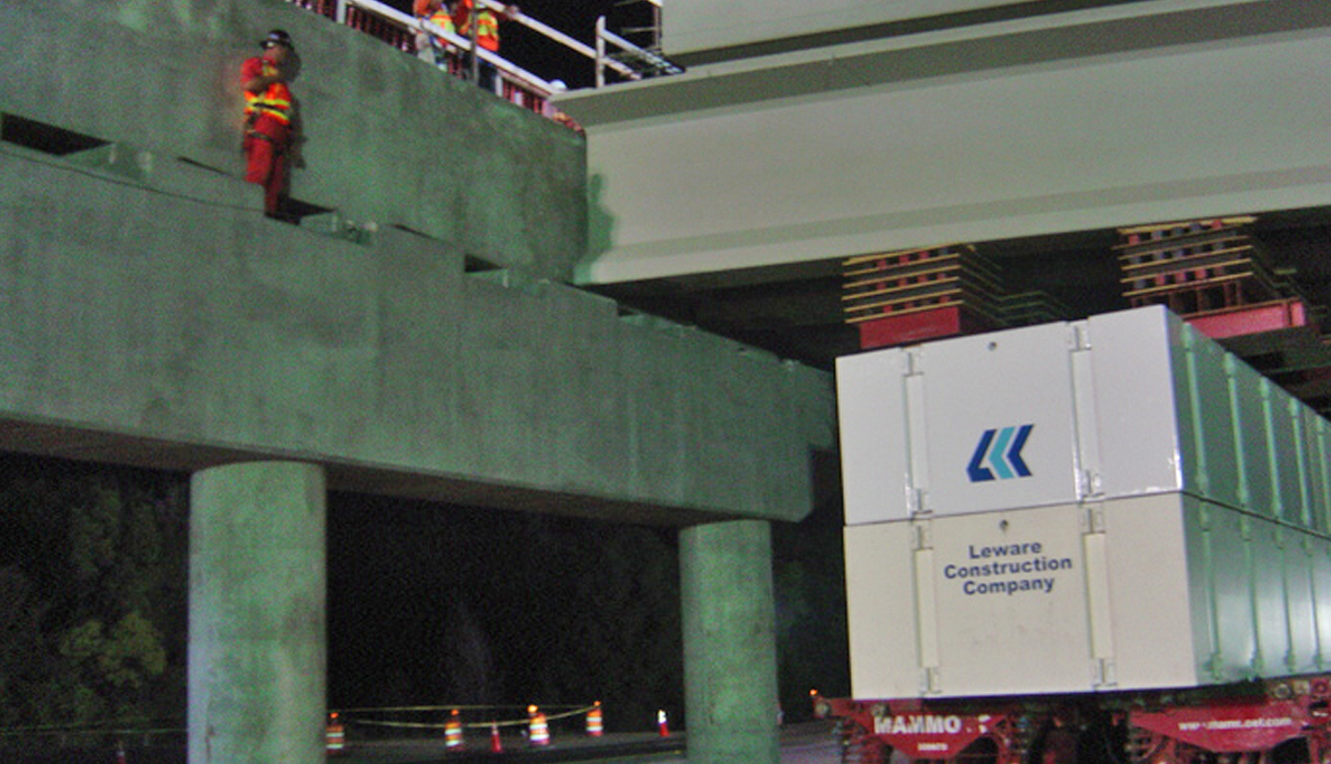 Florida Department of Transportation officials approached Leware after Contract award with a proposal to accomplish something that had never before been done in the United States: Fabricate and erect complete bridge spans over an Interstate highway using Self-Propelled-Modular-Transporter technology (SPMT). After the existing bridge spans were removed, two new 143’ spans were fabricated offsite while new foundations were constructed. These 1,600 ton units were then raised and transported 0.3 miles to be set over Interstate 4 in one night each, eliminating numerous nightly lane closures required for convention construction.