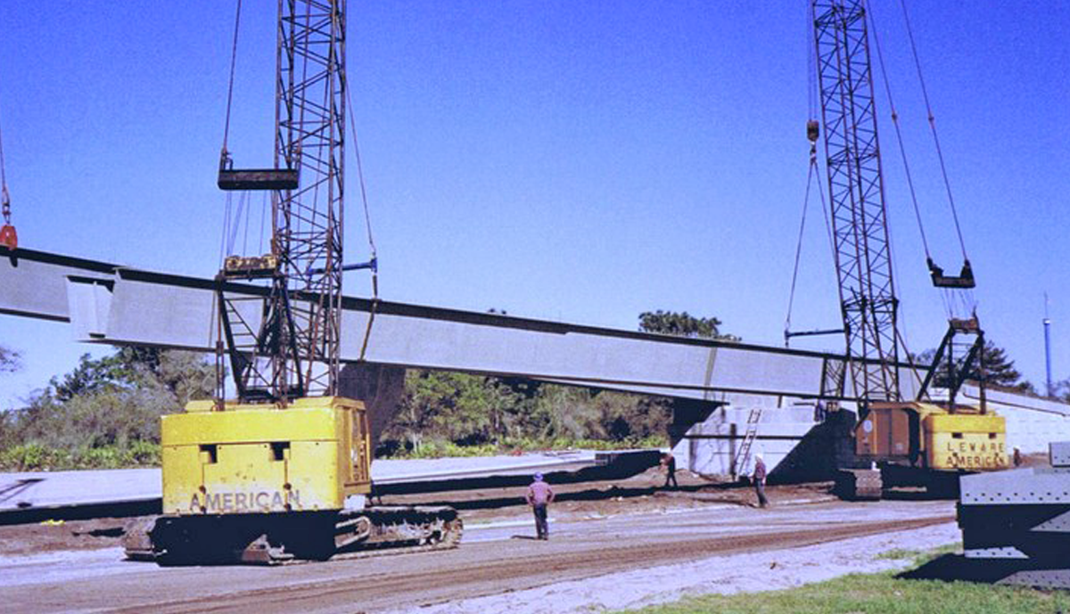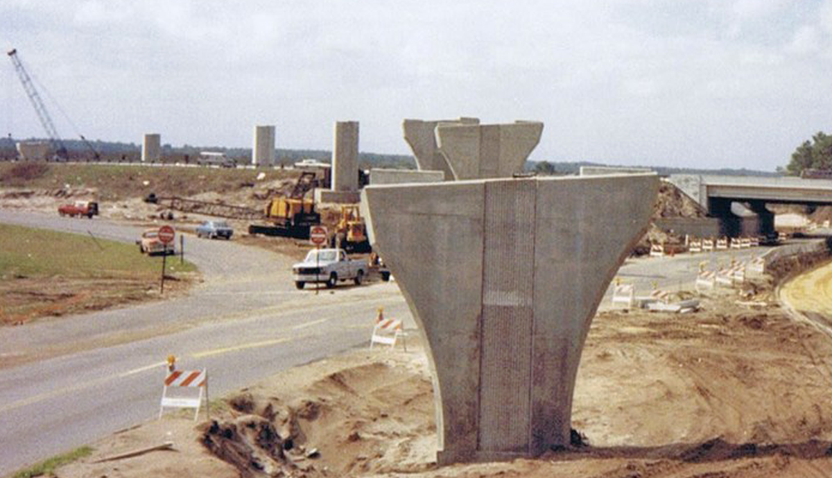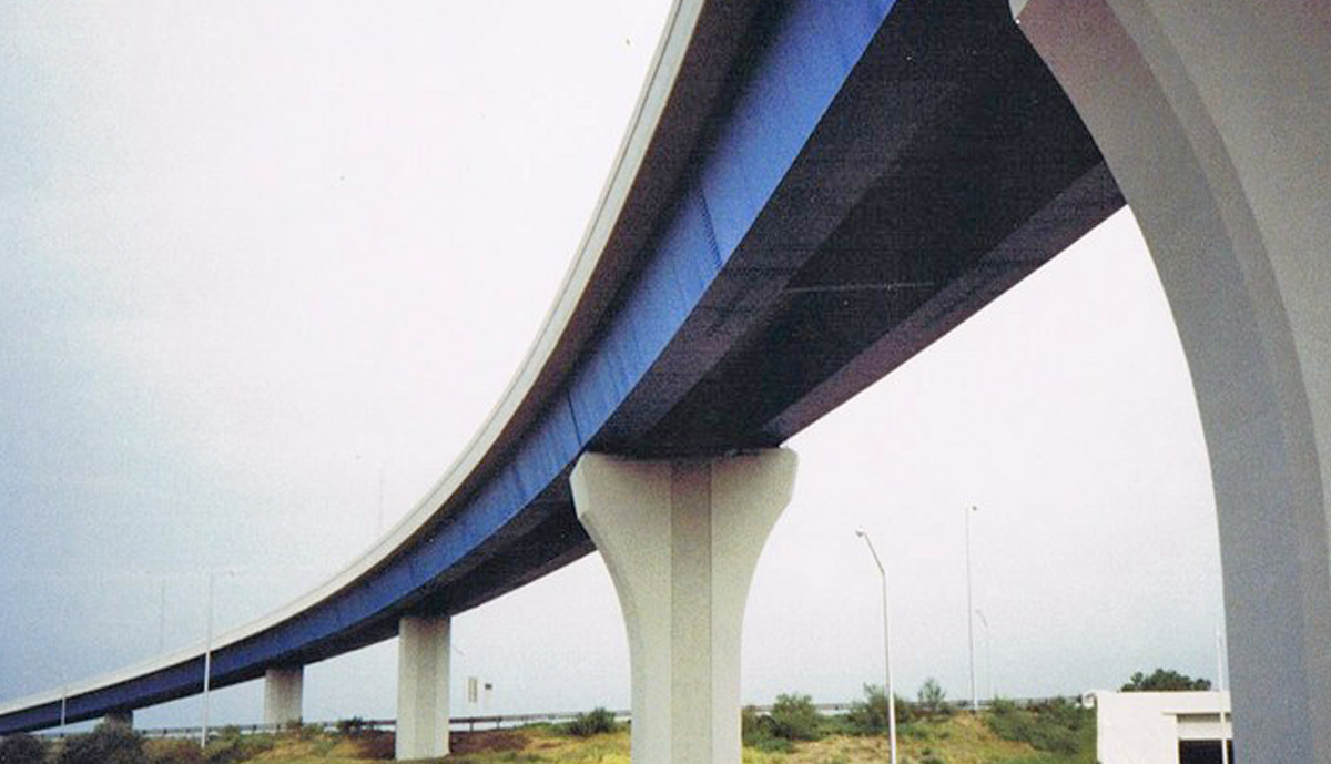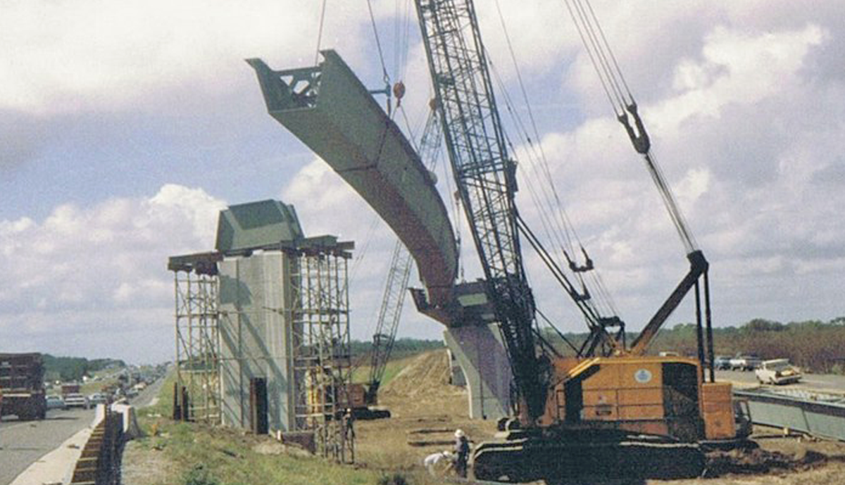 Florida’s first privately funded Interstate interchange, this 1,247’ Flyover incorporated 8 spans, the longest being 186’6”. The bridge deck is supported by twin trapezoidal box girders which utilized Framed-In Cap Beams at 3 of the 7 piers.