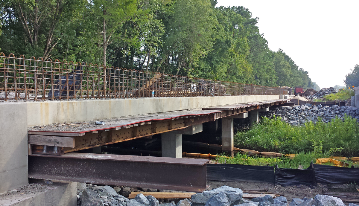 Located in the rural area between Baldwin and Callahan, this project consisted of reconstruction of 17 miles of US-301 from two lanes to a four-lane divided highway. Twin multi-span low level bridges founded on 24” concrete piling supporting flat slab cast-in-place decks were built at five creek locations. A twin single span FIB girder bridge was built over the Norfolk & Southern Railroad.