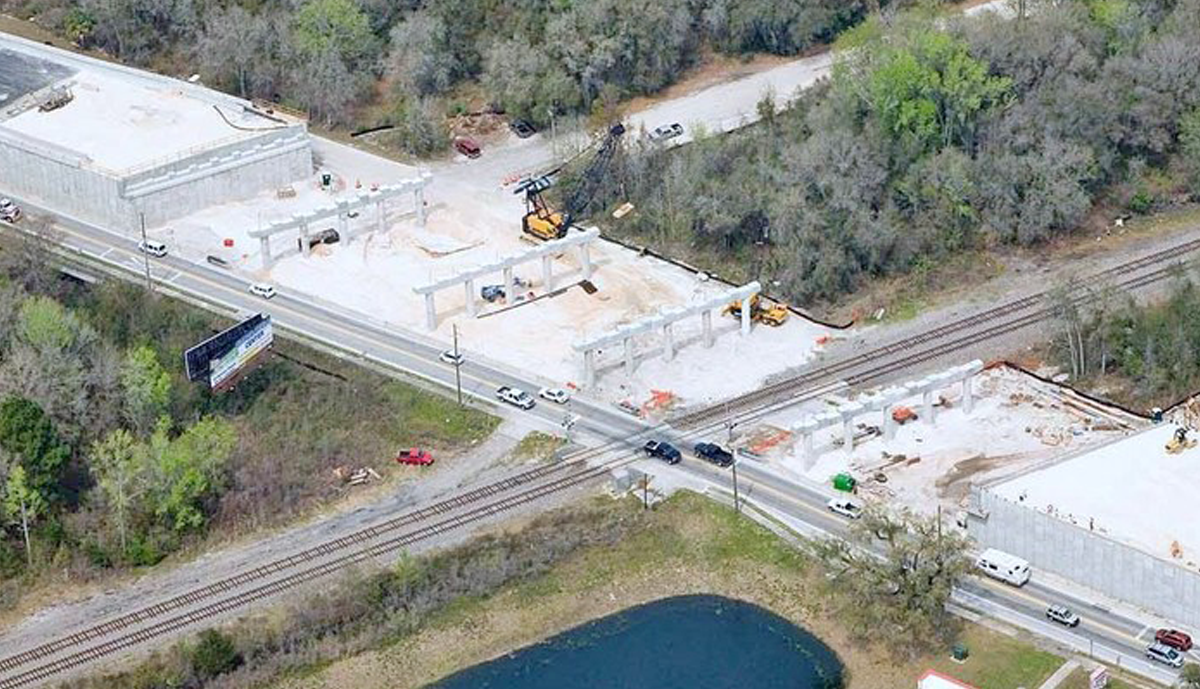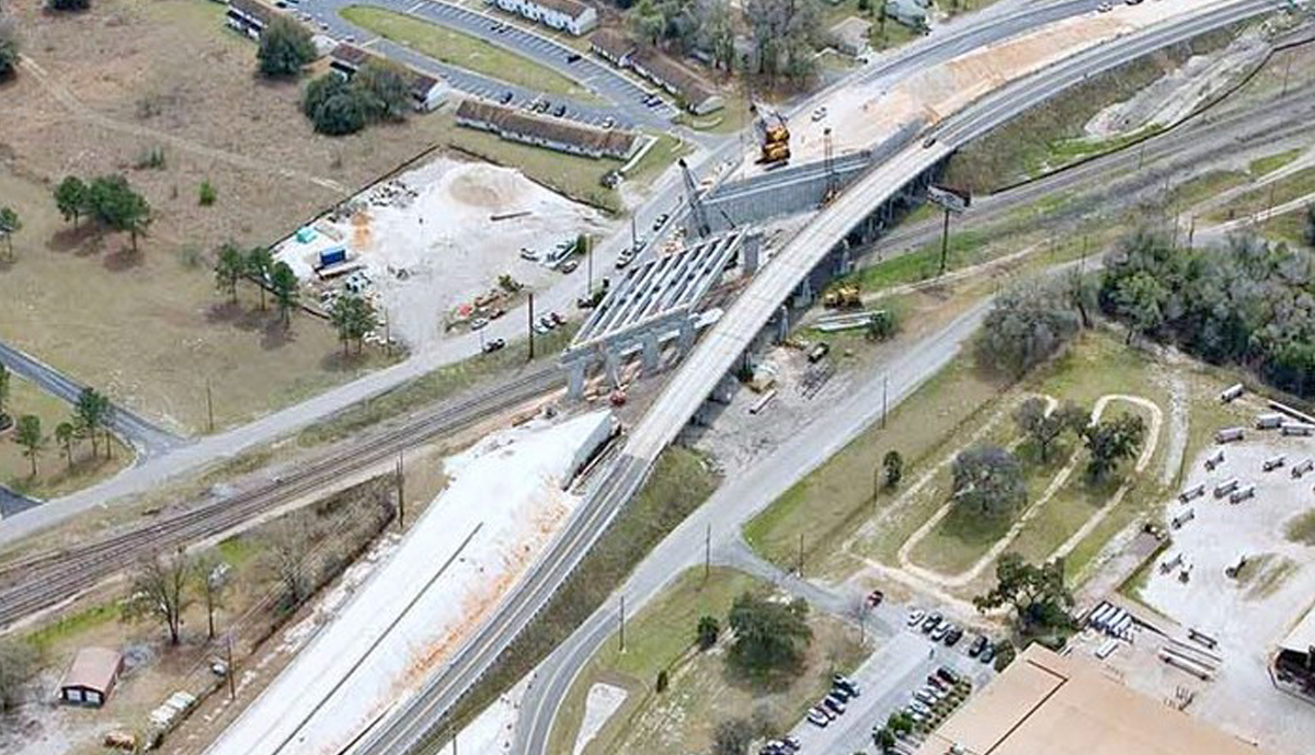 To enable FDOT to use existing rail tracks in the metropolitan Orlando area for the proposed SunRail commuter train, at-grade crossings on parallel CSX tracks needed to be replaced with overpass structures due to the increased freight traffic. The new 528’ long SR-44 overpass consists of a 5-span bridge located just south of the Wildwood switch yard. The SR-35 site, within the switch yard, was a 2-phase replacement of an antiquated 2-lane bridge. The new 3 span structure is 418’ long. Both new bridges accommodate four lanes of traffic with shoulders and sidewalks on each side