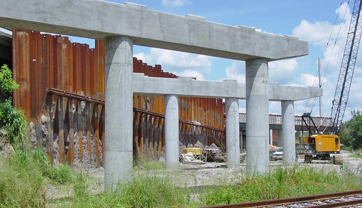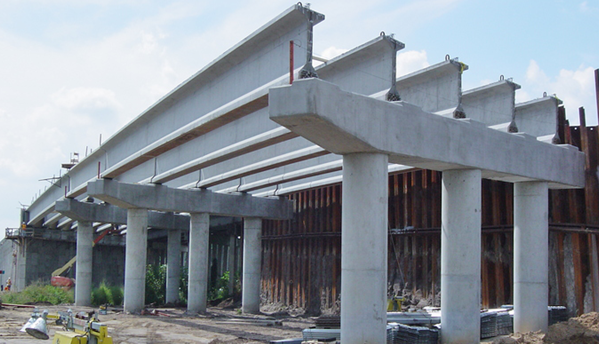 The original design consisted of two separate bridges, one over the railroad and one over Polk Street. Leware spearheaded the alternative design of a single bridge, eliminating the need for MSE wall retained embankment between the bridges. The award winning VECP provided monetary savings to the Owner and expedited completion of the project. The new 436’ 6” long, 98’ wide structure was constructed in two phases. Final configuration accommodated four lanes of traffic with a median separator and sidewalks along both sides.