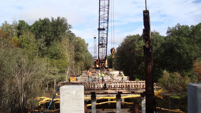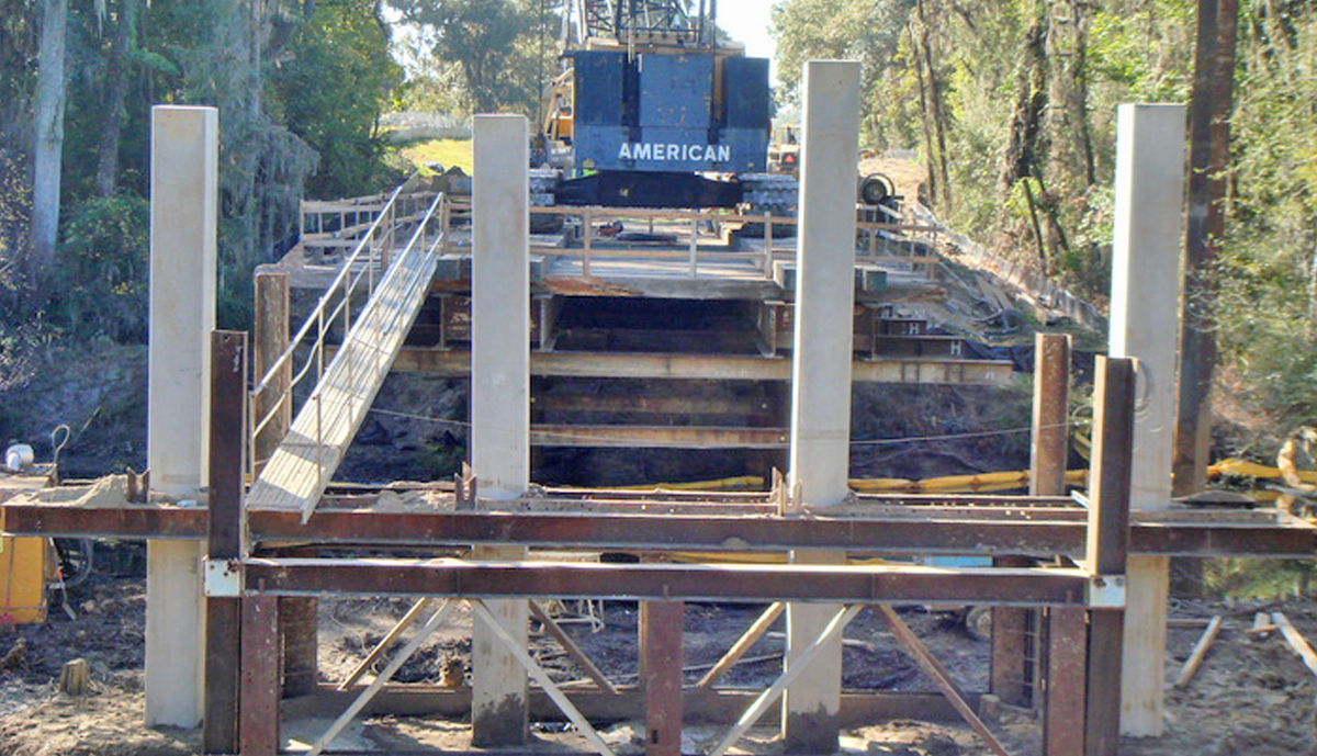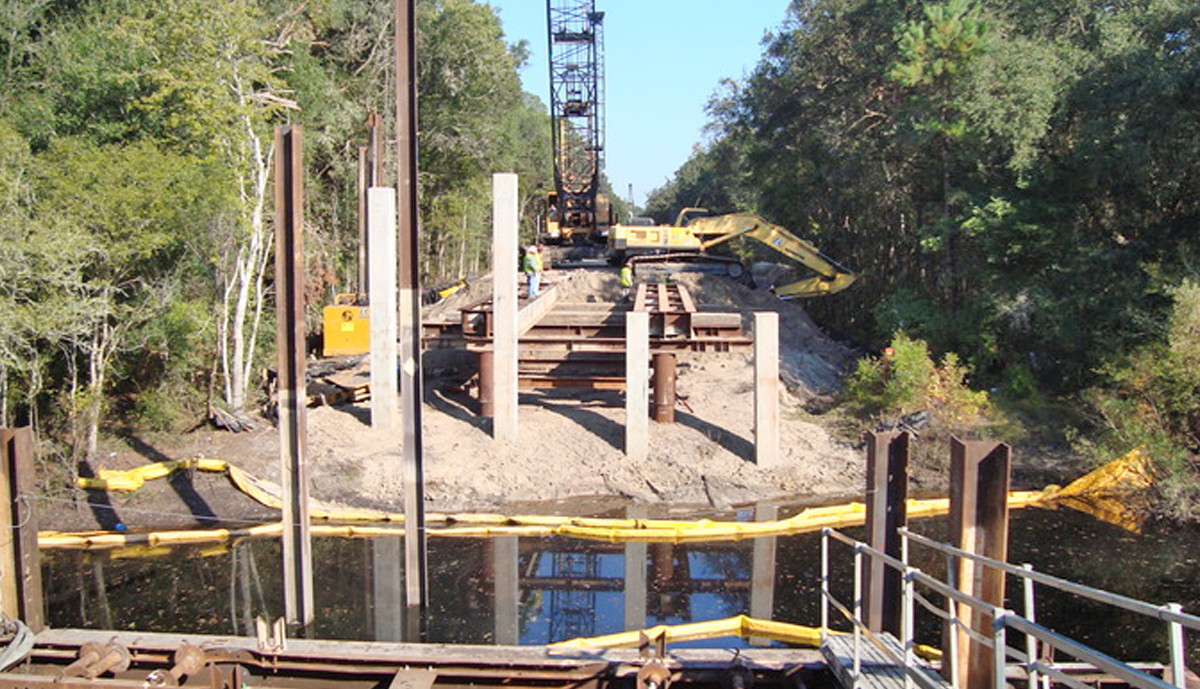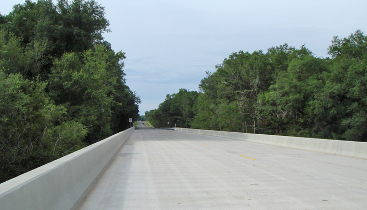 Located in the rural area south of Lake City, this project consists of the removal and replacement of the existing deficient bridge along with the associated roadway improvements. Removal of 125’ of existing embankment and roadway provided increased sheet flow through the drainage basin. Top-down construction methods were utilized due to environmental and right-of-way restrictions. The design of this 6-span structure incorporated the new Florida “I” Beam (FIB) spaced 12’ on centers. The project was completed within the original allowable contract time and received FDOT’s maximum Performance Score of 110.
