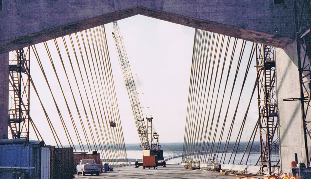 The entire St. Johns River crossing east of downtown Jacksonville consisted of four separate construction contracts. Leware’s task was the casting of 372,600 sq.ft. of bridge deck and barriers for the southern 4,050’ approach over Mill Cove.