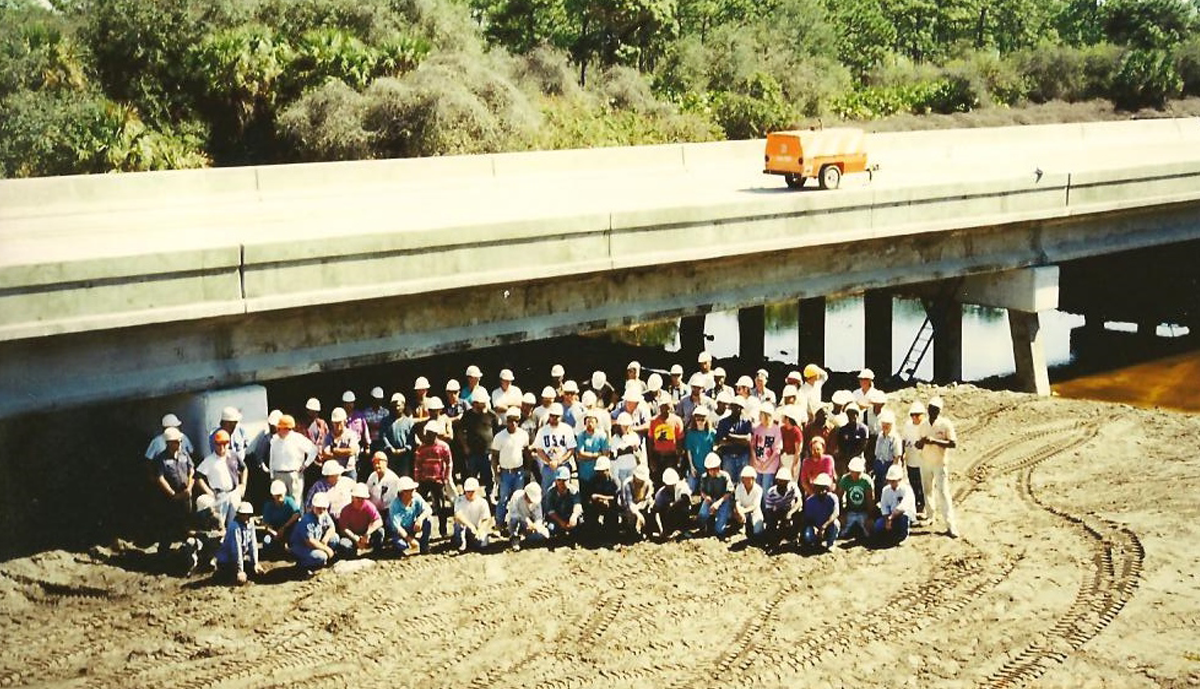 In 1996, an accident took place on I-75 Southbound in Sarasota County, closing the Interstate. A tanker truck full of diesel fuel lost control and overturned, spilling its’ load which ignited under the Salt Creek Crossing. The Southbound traffic had to be rerouted through downtown Venice, creating a backup several miles long. FDOT officials contacted Jim Leware, an agreement was reached and Leware Construction Company mobilized its resources based on a hand shake. Eighteen days later the bridge was reopened. All of the Bridge’s 5 span 330’ superstructure had to be removed and replaced including the AASHTO Type III Beams. Three intermediate pile caps along with their piling (to a depth of two feet below existing ground) also were required to be removed and replaced. The barrier wall was recast and painted, sod was laid, landscaping, and traffic striping. By all accounts it was a remarkable achievement involving tremendous effort and cooperation by all parties to enable so much to be accomplished in so little time.