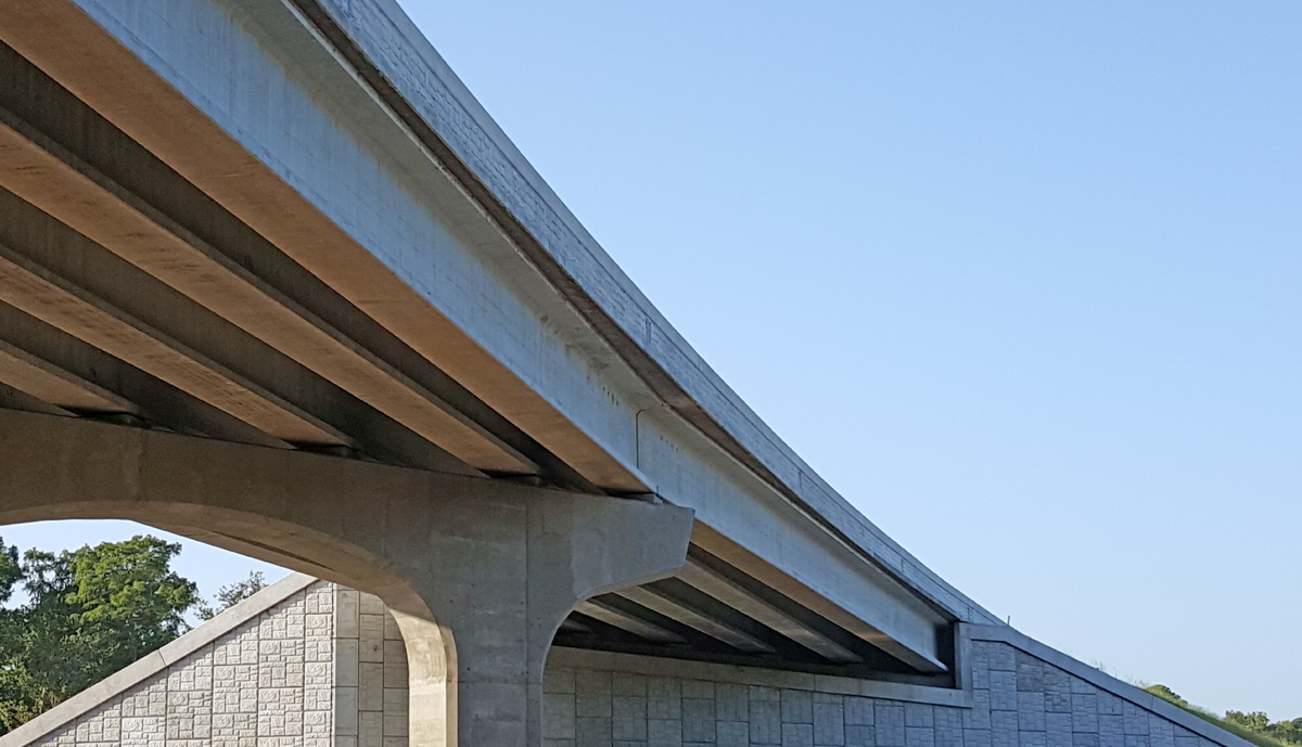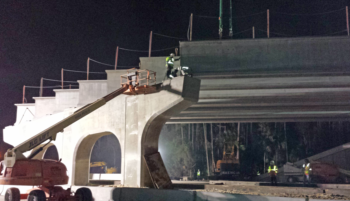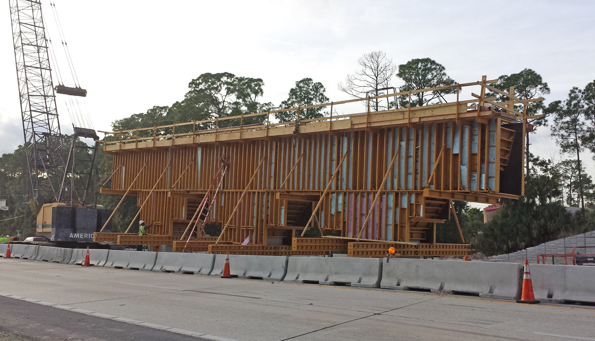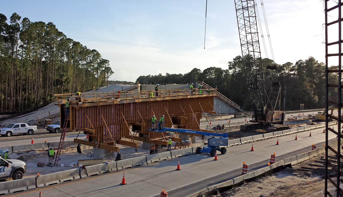 This project includes the complete reconstruction of I-4 between Deland and Daytona. Our subcontracted work includes construction of two ramp bridges over I-4 and US 92, multiple animal crossings, and the removal and replacement of the existing low level bridges over the Tomoka River. Early completion of the Ramp B bridge over US 92 was vital to the project to relieve congestion during Daytona International Speedway events. To add another level of aesthetics, the new Ramp A bridge over I-4 was the first slipformed, stamped barrier wall constructed in Florida.