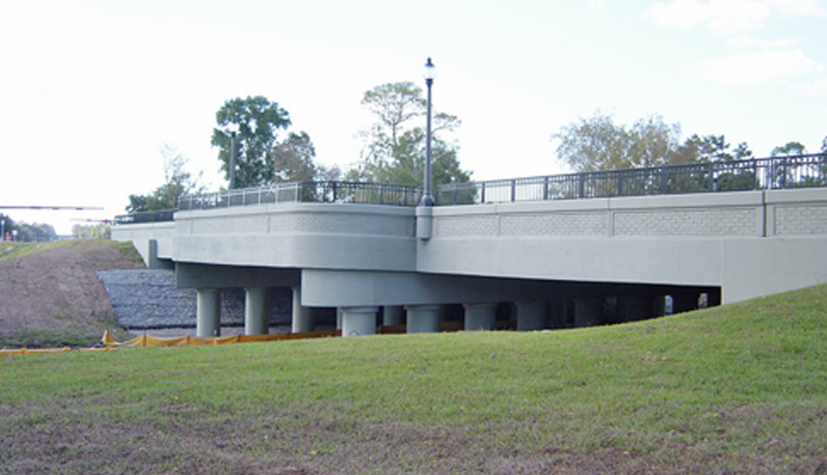 Located just off campus from the University of Florida, this bridge replacement project entailed the removal of an antiquated two lane bridge along with an accompanying pedestrian bridge. These two structures were replaced with a single Bridge, 97’2” wide and 120’ long, consisting of three 21” thick, cast in place spans. The center span incorporated extended observation platforms complete with seating and architectural finishes.