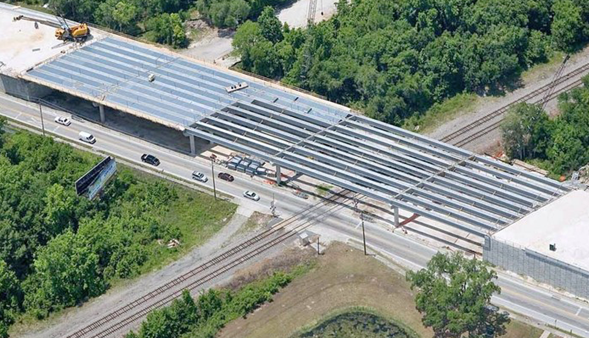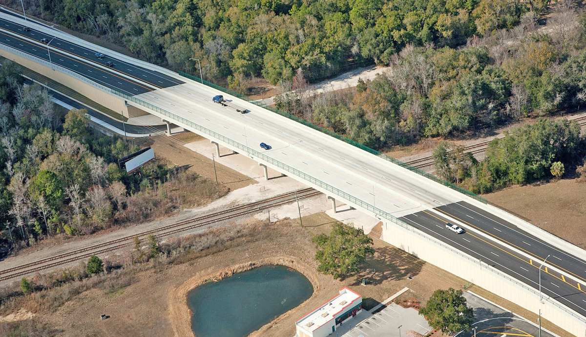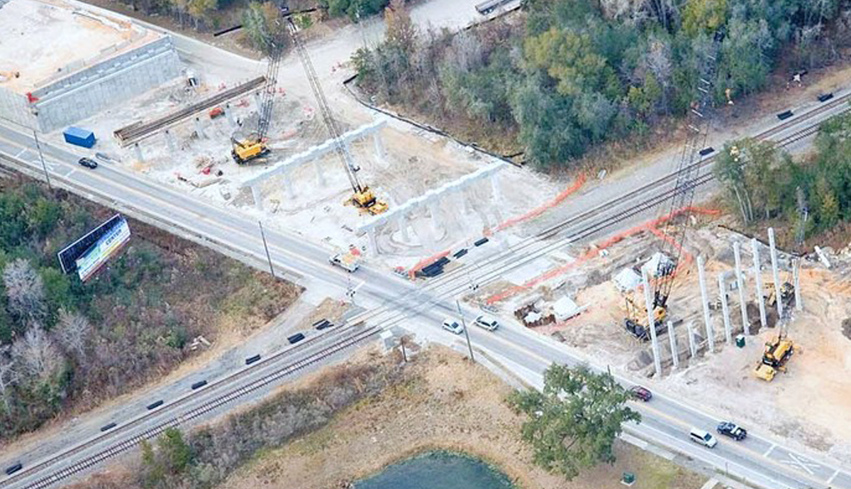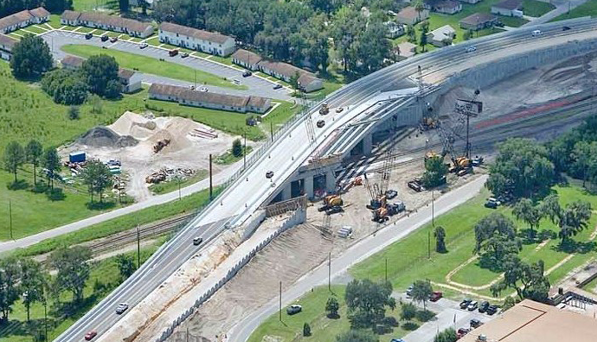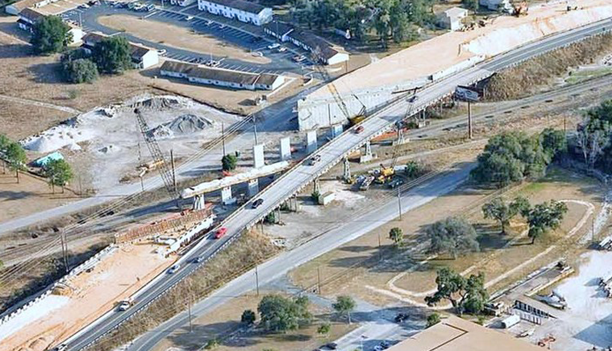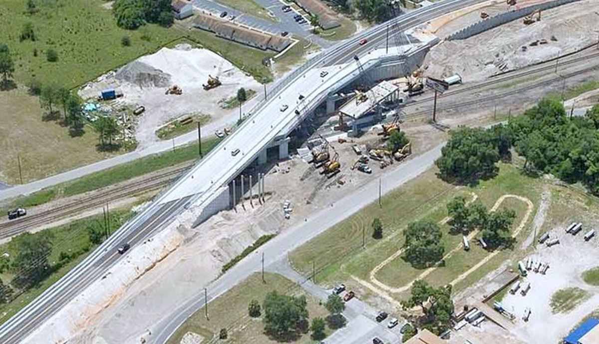 To enable FDOT to use existing rail tracks in the metropolitan Orlando area for the proposed SunRail commuter train, at-grade crossings on parallel CSX tracks needed to be replaced with overpass structures due to the increased freight traffic. The new 528’ long SR-44 overpass consists of a 5-span bridge located just south of the Wildwood switch yard. The SR-35 site, within the switch yard, was a 2-phase replacement of an antiquated 2-lane bridge. The new 3 span structure is 418’ long. Both new bridges accommodate four lanes of traffic with shoulders and sidewalks on each side