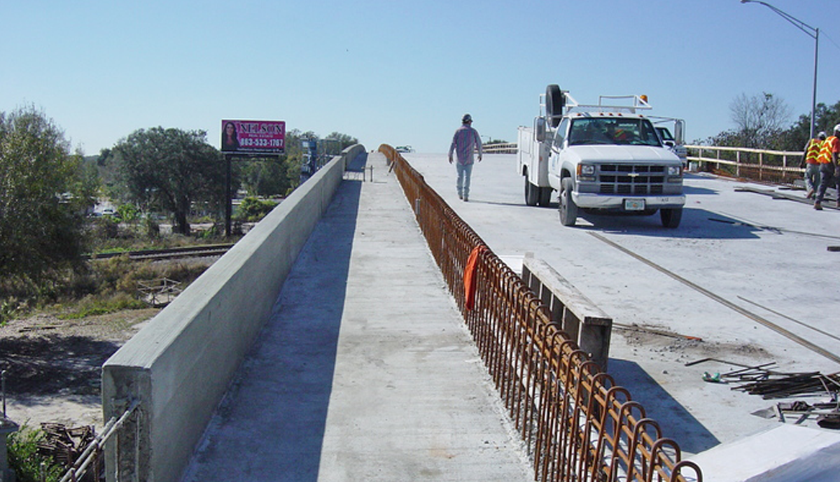The original design consisted of two separate bridges, one over the railroad and one over Polk Street. Leware spearheaded the alternative design of a single bridge, eliminating the need for MSE wall retained embankment between the bridges. The award winning VECP provided monetary savings to the Owner and expedited completion of the project. The new 436’ 6” long, 98’ wide structure was constructed in two phases. Final configuration accommodated four lanes of traffic with a median separator and sidewalks along both sides.